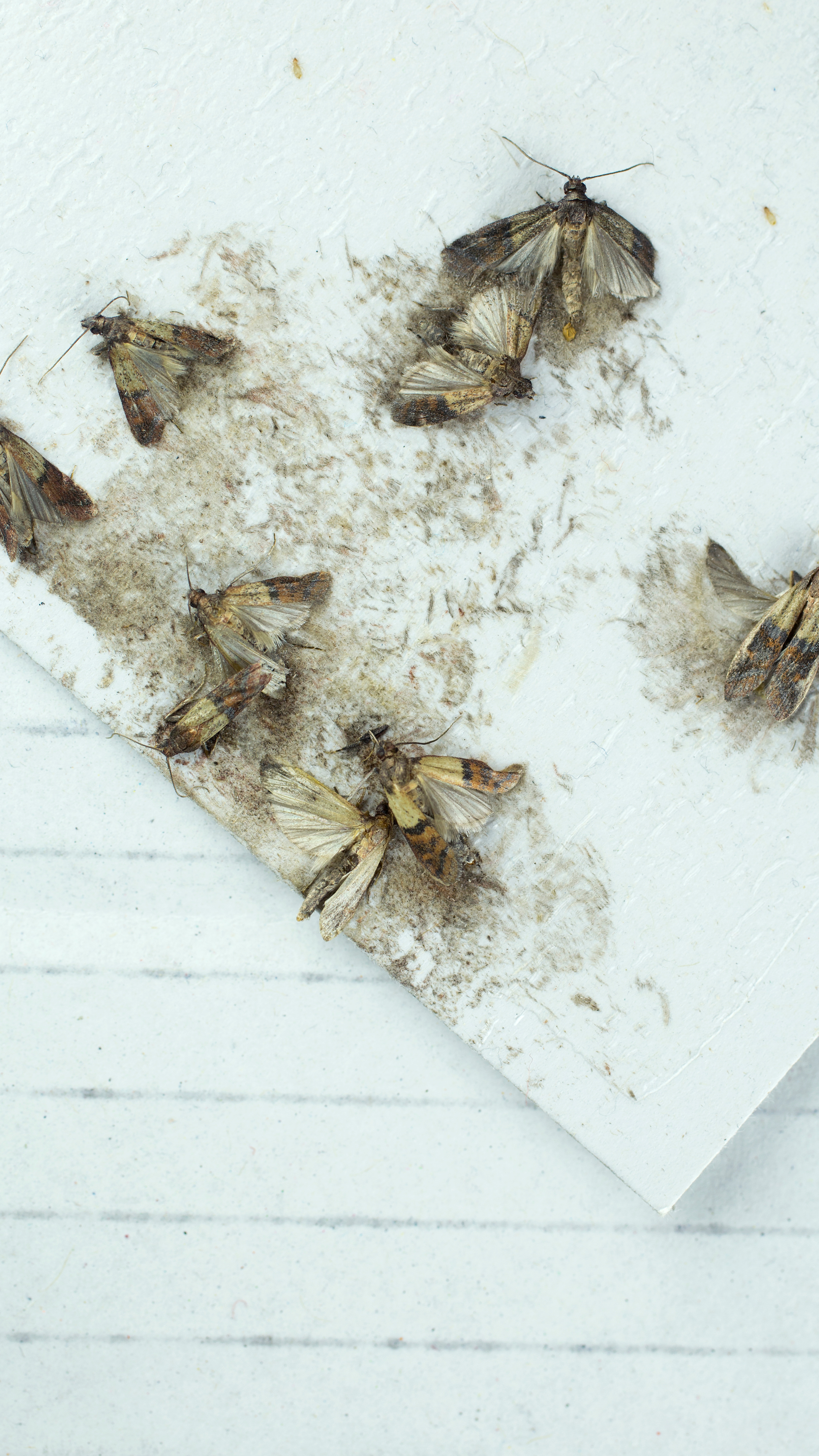 Foods such as flour, grains, nuts, and dried fruits are often infested with moths. Infested foods should be discarded.