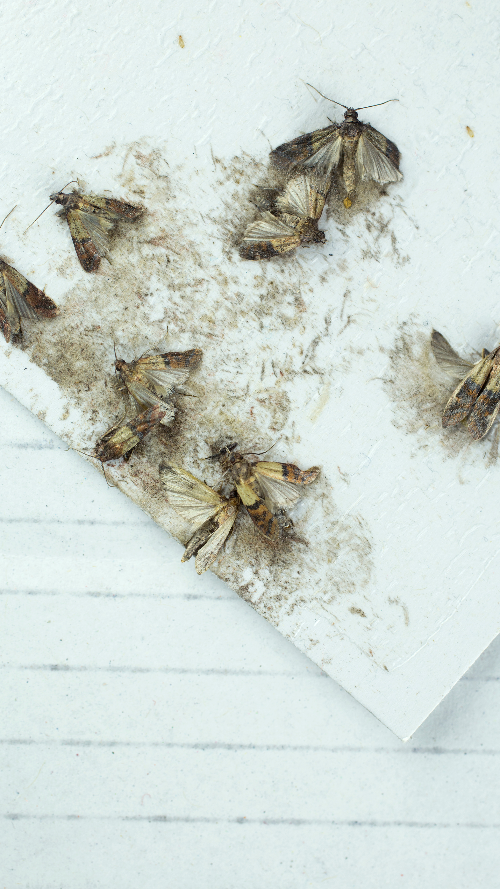 Häufige Mottenarten in Haushalten sind Lebensmittelmotten und Kleidermotten.