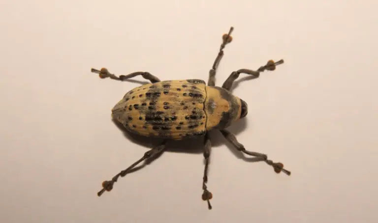 La chrysomèle du haricot (Acanthoscelides obtectus) est l'un des ravageurs les plus courants dans les cuisines, les garde-manger et les entrepôts. Elle s'attaque principalement aux haricots secs, aux pois et autres légumineuses . Les femelles pondent leurs œufs directement sur les haricots, d'où éclosent rapidement de petites larves. Celles-ci creusent des galeries dans le haricot et s'y nourrissent jusqu'à leur nymphose.